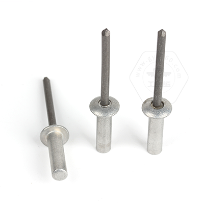 與開(kāi)口型鉚釘對比:開(kāi)口型鉚釘安裝時(shí)需要額外的工具來(lái)固定,而封閉型圓頭鋁鉚釘通過(guò)其封閉設計,在安裝后能夠提供更好的密封效果和較高的抗腐蝕性。